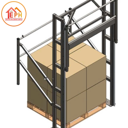 Tien Phat EPH provides safe solutions for the system of transferring goods to the mezzanine of production machines. Installed at the loading and pallet location of the mezzanine